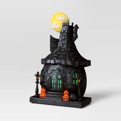 This 11.42-Inch Witch Hut Halloween Decorative Prop from Hyde and EEK! Boutique™ adds a magical touch to your Halloween decor. Made from plastic, this decorative prop is designed like a black witch hut with a yellow moon, green windows, and orange jack-o’-lanterns. This battery-powered prop lights up with an eerie glow and boasts musical and animated features for extra creepy-cool vibes. Place it in a cozy corner, in your entryway or on a tabletop to create a spellbinding indoor display.