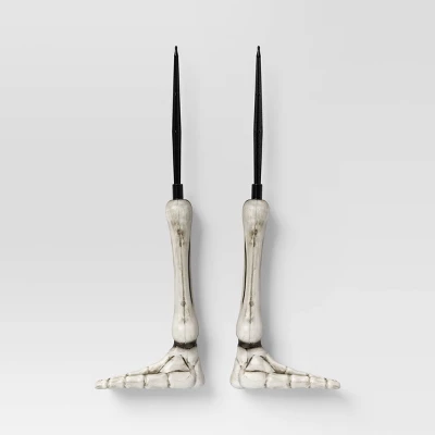 Make your front lawn or backyard look super eerie-tacular enough to scare guests, ghosts or trick-or-treaters with this Yard Stake Skeleton Feet Halloween Decorative Holiday Scene Prop from Hyde and EEK! Boutique™. Designed to resemble a skeleton’s feet, this decorative prop adds eerie vibes to your outdoor space. Made from plastic to withstand the elements for seasons to come, this Halloween yard decoration is set on long and pointed stakes to ensure they stay securely anchored in the ground.