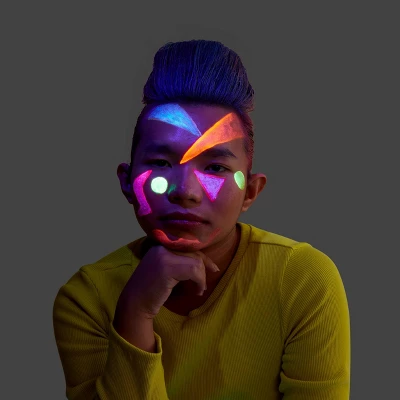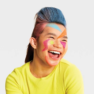 Add a fun splash of color to your Halloween look with this Halloween Costume UV Neon Cream Makeup Kit from Hyde and EEK! Boutique™. This makeup kit comes with six cream tubes in assorted neon hues — yellow, orange pink, aqua, purple and reddish-orange — that intensify under UV light for extra flair. Whether you’re conjuring a celestial fairy, a whimsical witch or a stylish specter, it adds the perfect finishing touch to complete your themed outfit.