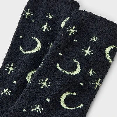 Step into the festive season with style wearing the Women’s Glow – in – the – Dark Moon and Stars Halloween Cozy Crew Socks from Hyde & EEK Boutique™ in Black. Featuring a fun glow-in-the-dark design with moon and stars, these crew socks blend festive fun with ultra-soft comfort. Crafted from midweight knit fabric, they’re perfect for keeping your feet warm during crisp fall days and haunted movie marathons alike. The cozy texture and playful graphic make them a go-to accessory for Halloween lovers who want to add a subtle seasonal touch to their loungewear or casual looks.